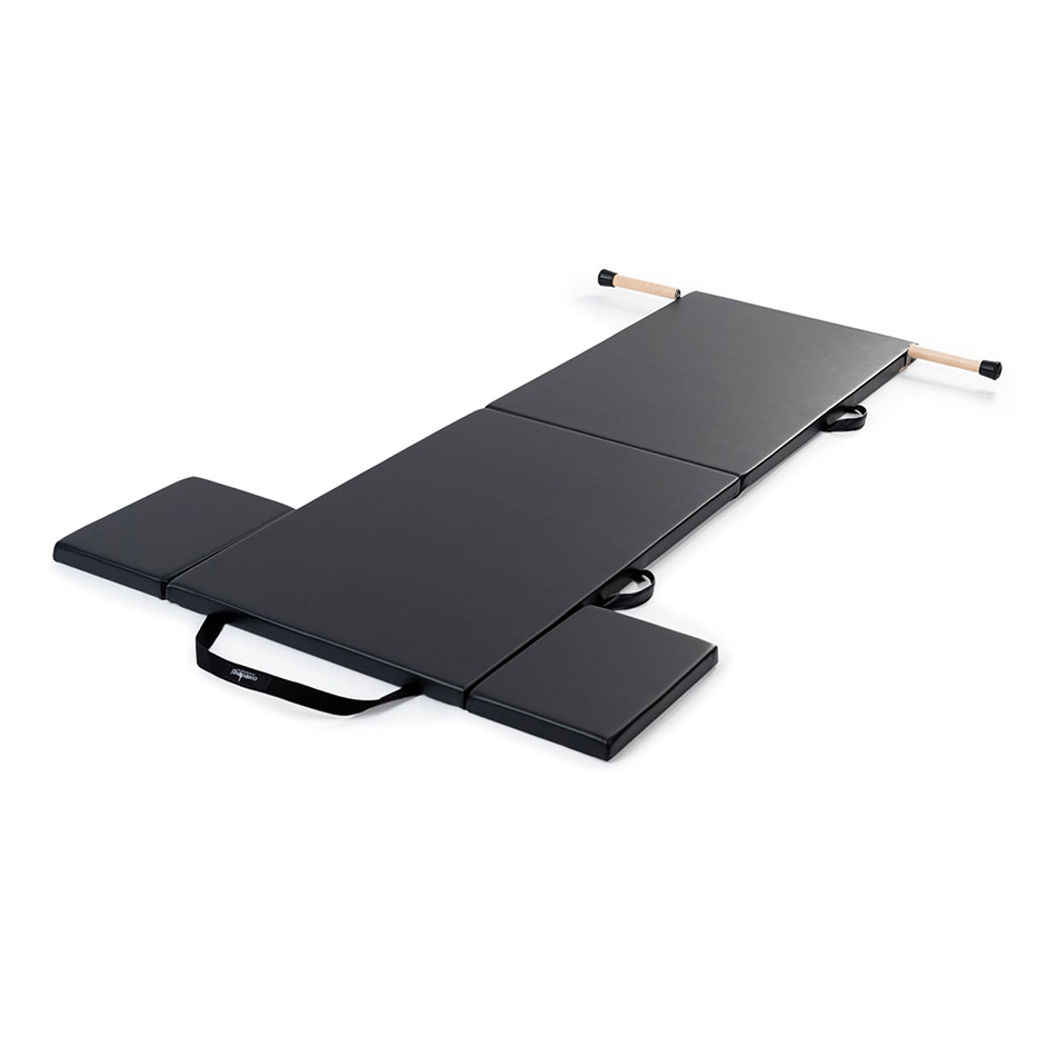 Klasyczna Mata do Pilates to coś więcej niż zwykła mata do ćwiczeń. Posiada dodatkowe elementy, takie jak boxy, drążki, pasek na stopy, dzięki którym rozwiniesz i usprawnisz trening całego ciała, a każde ćwiczenie wykonasz z precyzją. Jej solidna konstrukcja (grubość maty to 3,8 cm), zapewni Ci odpowiednie wsparcie i stabilność podczas ćwiczeń. Dodatkowo jest miękka i wytrzymała, dzięki czemu dostosuje się do kształtu ciała i wesprze je podczas ruchu i w pozycjach statycznych. To właśnie na macie poznasz oryginalną kolejność ćwiczeń (pilates order) opracowaną przez Josepha Pilatesa, a także nauczysz się płynnych przejść z jednego cwiczenia do drugiego.